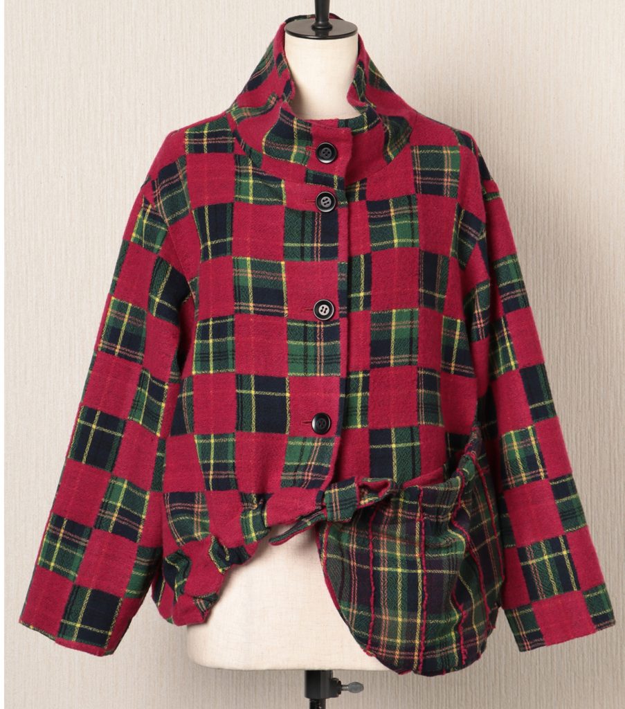 タータンチェックとブロックチェックのコラボレーションが大人かわいいチェックのジャケット!!